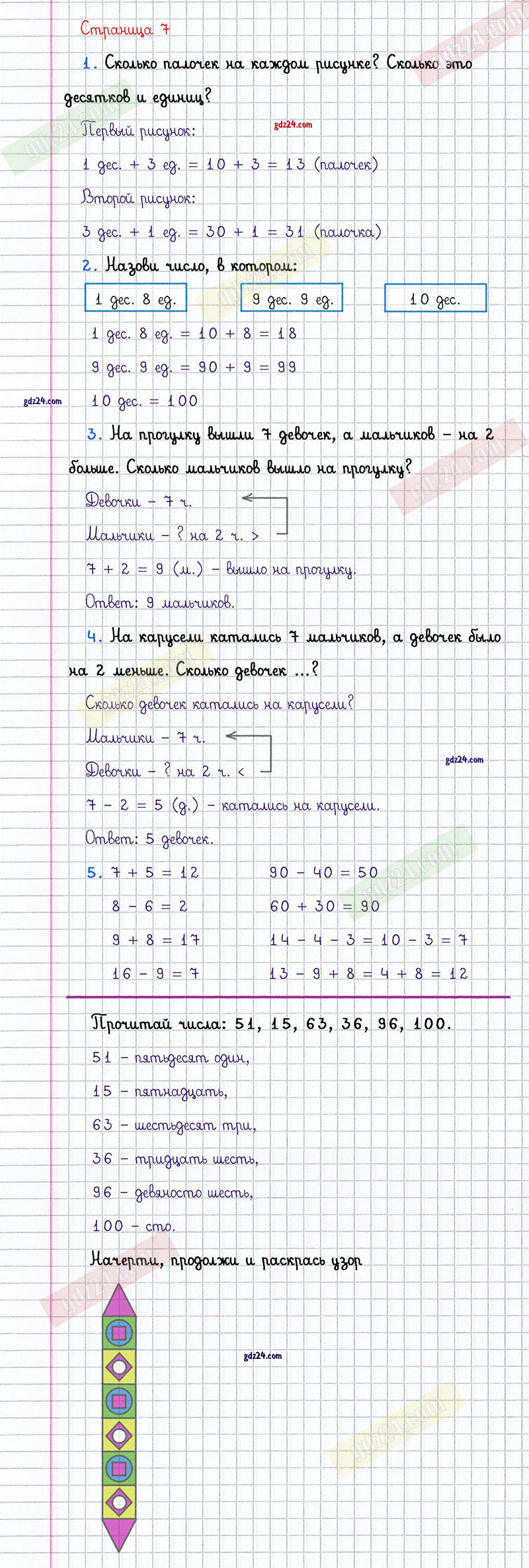 Подробные ответы к заданиям, расположенным на 7 странице 1 части учебника по математике авторов М.И. Моро, М.А. Бантова, Г.И. Бельтюкова для учащихся 2 класса.