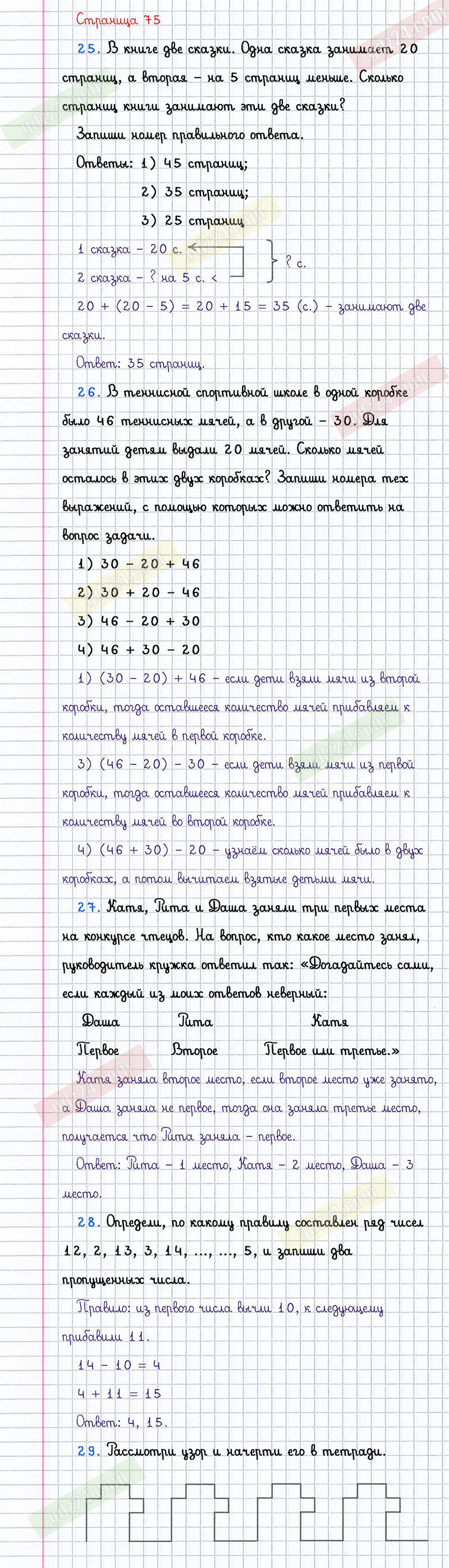 Подробные ответы к заданиям, расположенным на 75 странице 1 части учебника по математике авторов М.И. Моро, М.А. Бантова, Г.И. Бельтюкова для учащихся 2 класса.