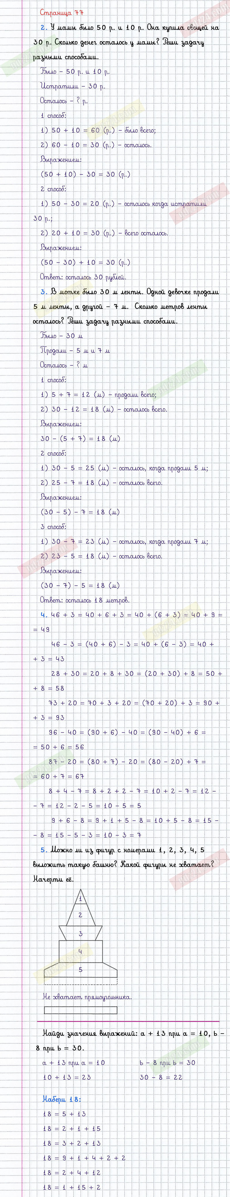 Подробные ответы к заданиям, расположенным на 77 странице 1 части учебника по математике авторов М.И. Моро, М.А. Бантова, Г.И. Бельтюкова для учащихся 2 класса.
