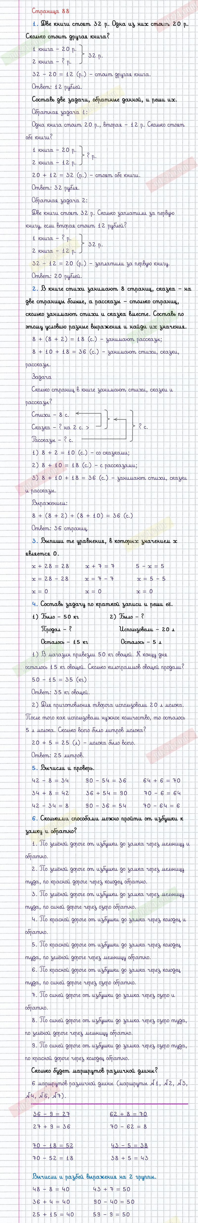 Подробные ответы к заданиям, расположенным на 88 странице 1 части учебника по математике авторов М.И. Моро, М.А. Бантова, Г.И. Бельтюкова для учащихся 2 класса.
