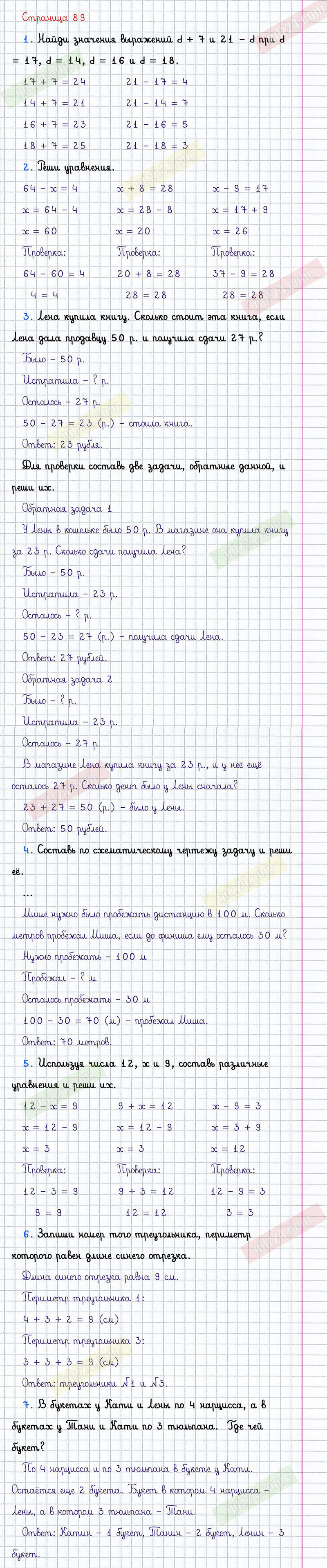 Подробные ответы к заданиям, расположенным на 89 странице 1 части учебника по математике авторов М.И. Моро, М.А. Бантова, Г.И. Бельтюкова для учащихся 2 класса.