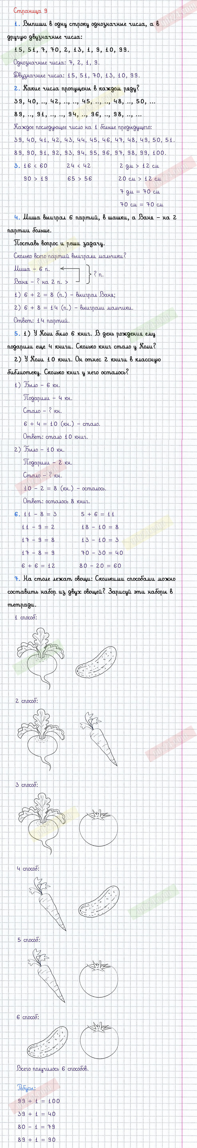 Подробные ответы к заданиям, расположенным на 9 странице 1 части учебника по математике авторов М.И. Моро, М.А. Бантова, Г.И. Бельтюкова для учащихся 2 класса.