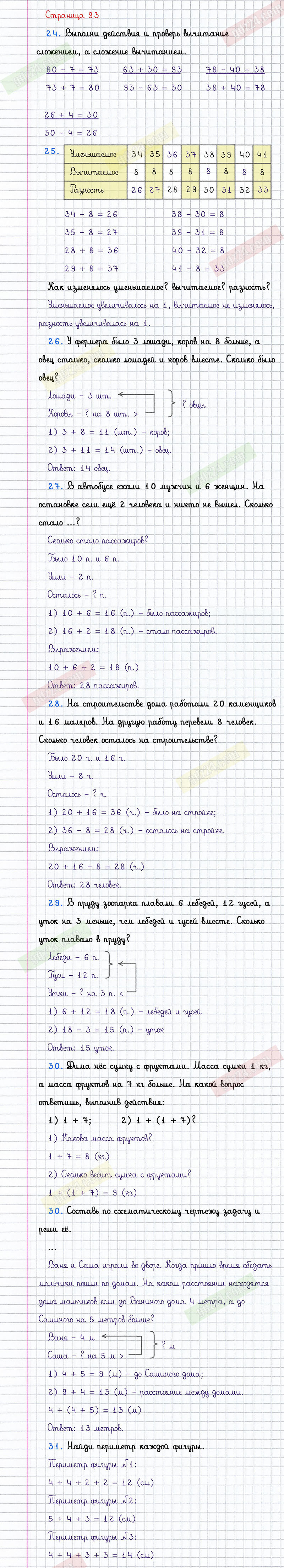 Подробные ответы к заданиям, расположенным на 93 странице 1 части учебника по математике авторов М.И. Моро, М.А. Бантова, Г.И. Бельтюкова для учащихся 2 класса.