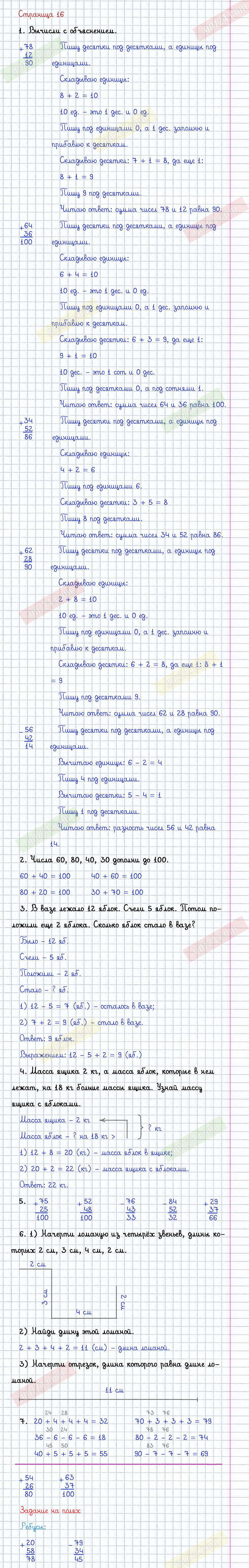 Ответы к заданиям на 16 странице учебника по математике авторов Моро М.И., Бантова М.А., Бельтюкова Г.И. за 2 класс 2 часть.