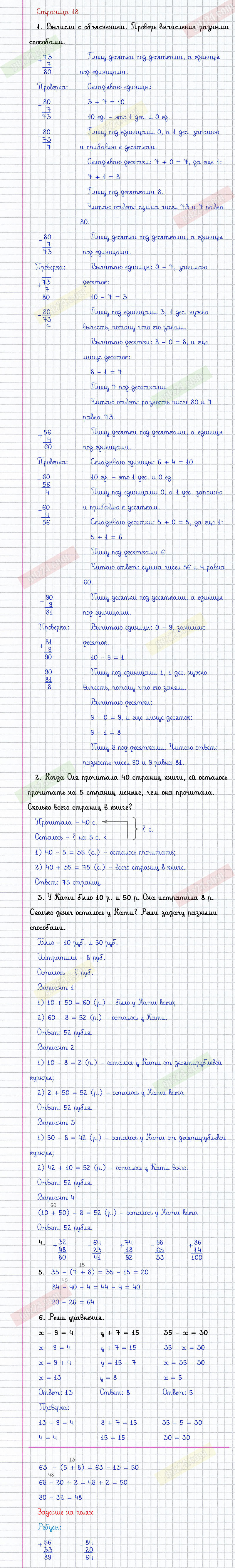 Ответы к заданиям на 18 странице учебника по математике авторов Моро М.И., Бантова М.А., Бельтюкова Г.И. за 2 класс 2 часть.