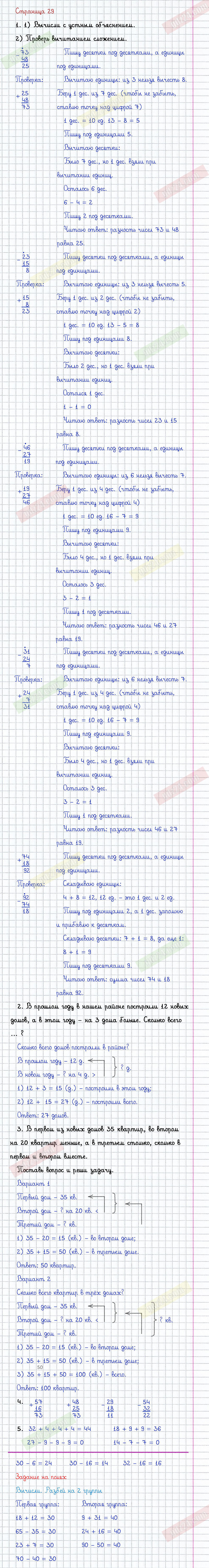 Ответы к заданиям на 29 странице учебника по математике авторов Моро М.И., Бантова М.А., Бельтюкова Г.И. за 2 класс 2 часть.