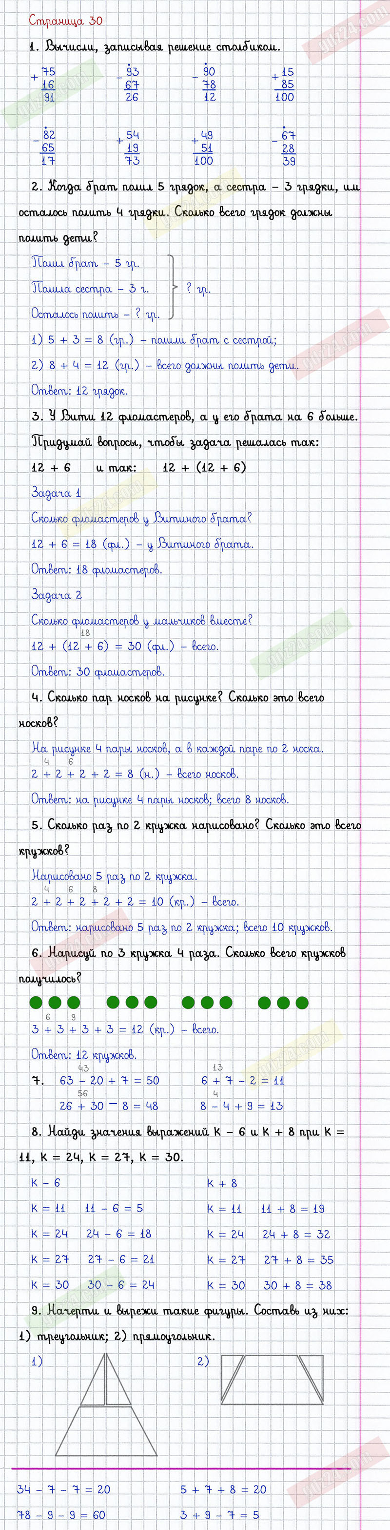 Ответы к заданиям на 30 странице учебника по математике авторов Моро М.И., Бантова М.А., Бельтюкова Г.И. за 2 класс 2 часть.