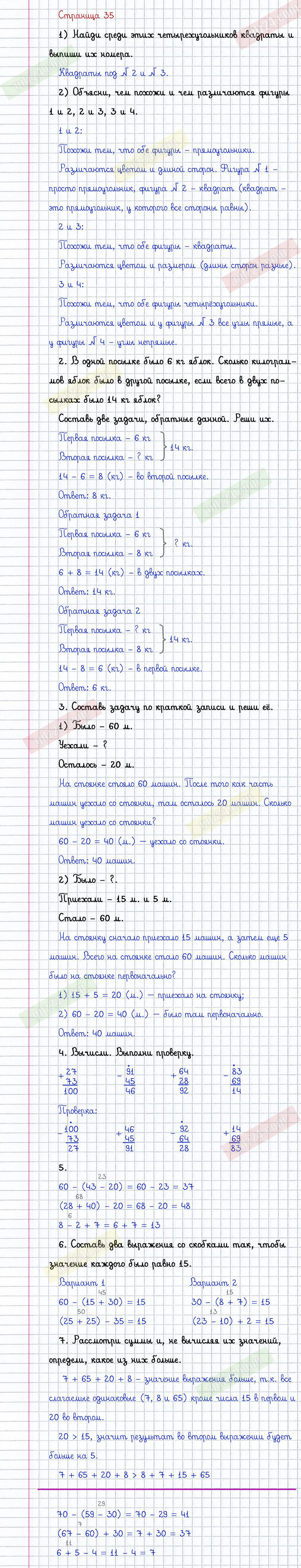 Ответы к заданиям на 35 странице учебника по математике авторов Моро М.И., Бантова М.А., Бельтюкова Г.И. за 2 класс 2 часть.