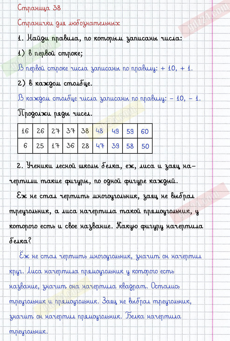 Ответы к заданиям на 38 странице учебника по математике авторов Моро М.И., Бантова М.А., Бельтюкова Г.И. за 2 класс 2 часть.