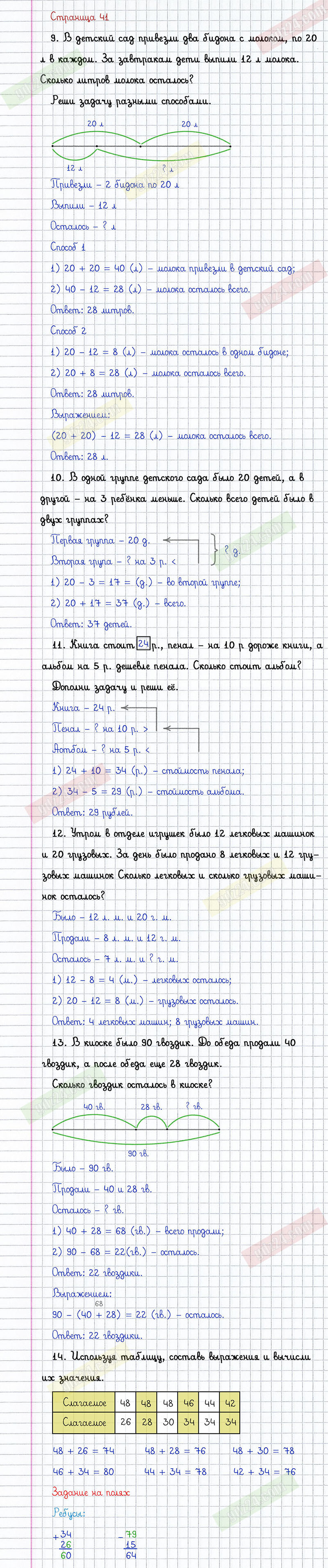 Ответы к заданиям на 41 странице учебника по математике авторов Моро М.И., Бантова М.А., Бельтюкова Г.И. за 2 класс 2 часть.