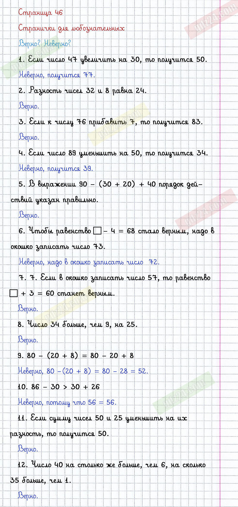 Ответы к заданиям на 46 странице учебника по математике авторов Моро М.И., Бантова М.А., Бельтюкова Г.И. за 2 класс 2 часть.
