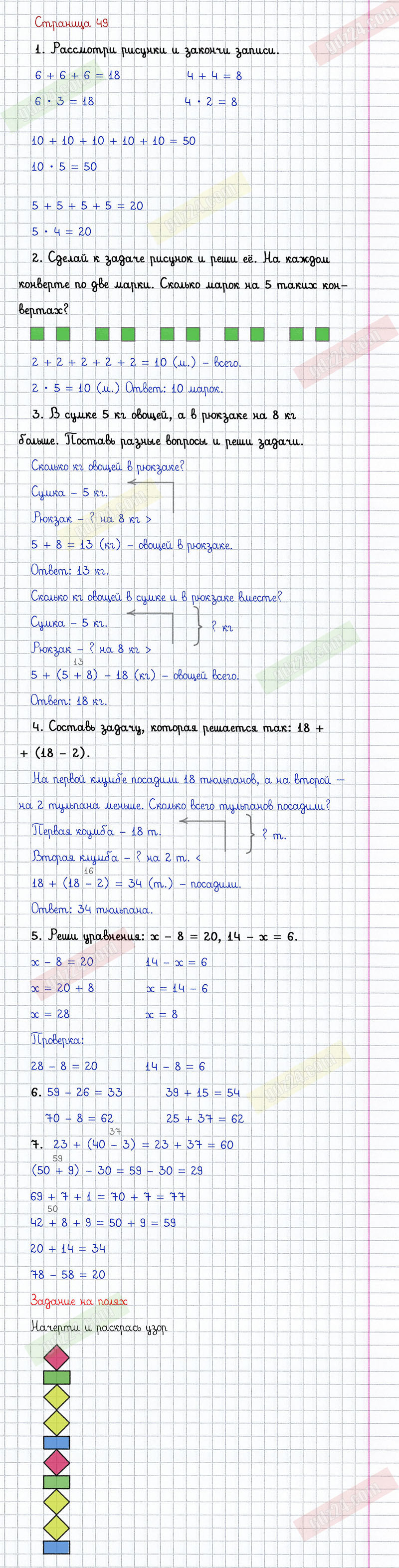 Ответы к заданиям на 49 странице учебника по математике авторов Моро М.И., Бантова М.А., Бельтюкова Г.И. за 2 класс 2 часть.