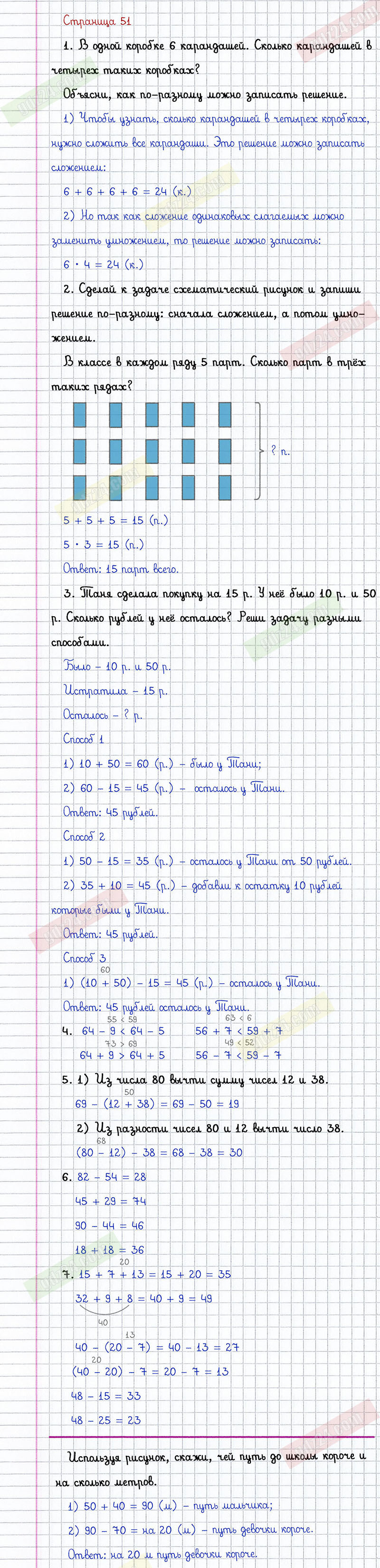 Ответы к заданиям на 51 странице учебника по математике авторов Моро М.И., Бантова М.А., Бельтюкова Г.И. за 2 класс 2 часть.
