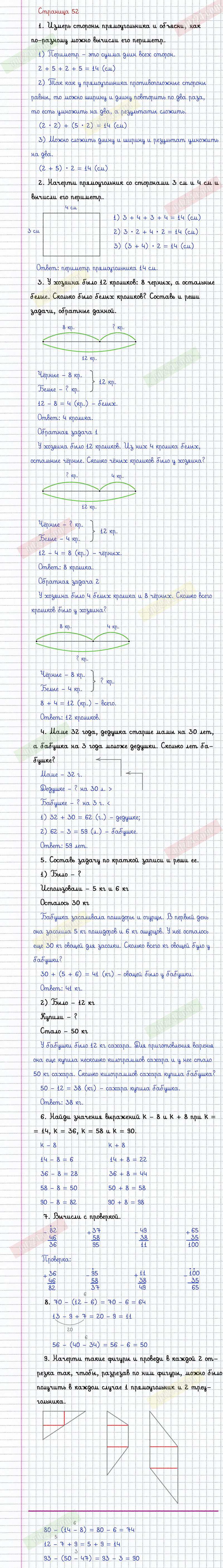 Ответы к заданиям на 52 странице учебника по математике авторов Моро М.И., Бантова М.А., Бельтюкова Г.И. за 2 класс 2 часть.