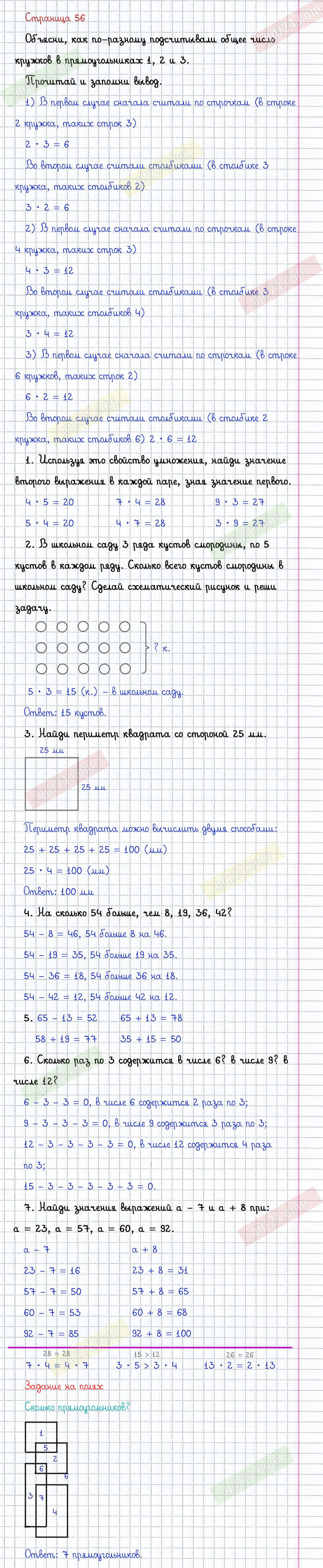 Ответы к заданиям на 56 странице учебника по математике авторов Моро М.И., Бантова М.А., Бельтюкова Г.И. за 2 класс 2 часть.