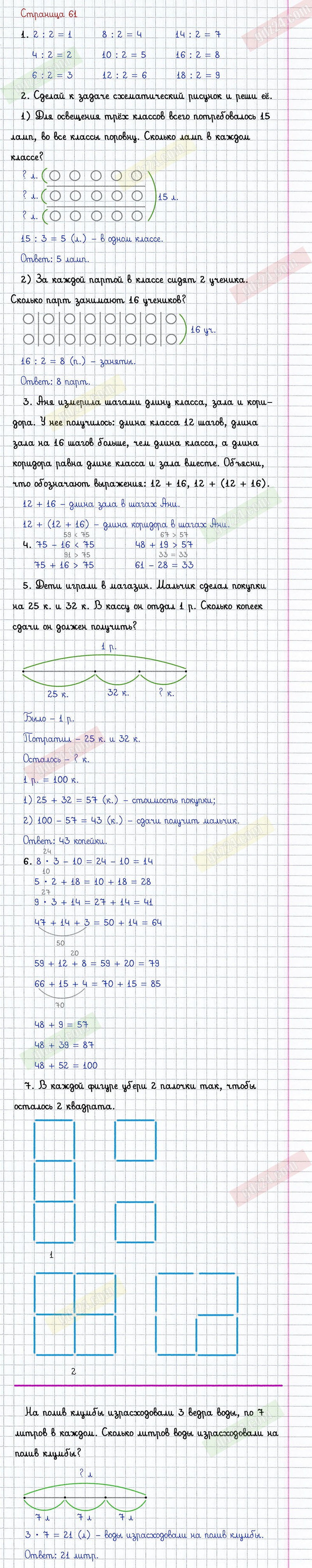 Ответы к заданиям на 61 странице учебника по математике авторов Моро М.И., Бантова М.А., Бельтюкова Г.И. за 2 класс 2 часть.