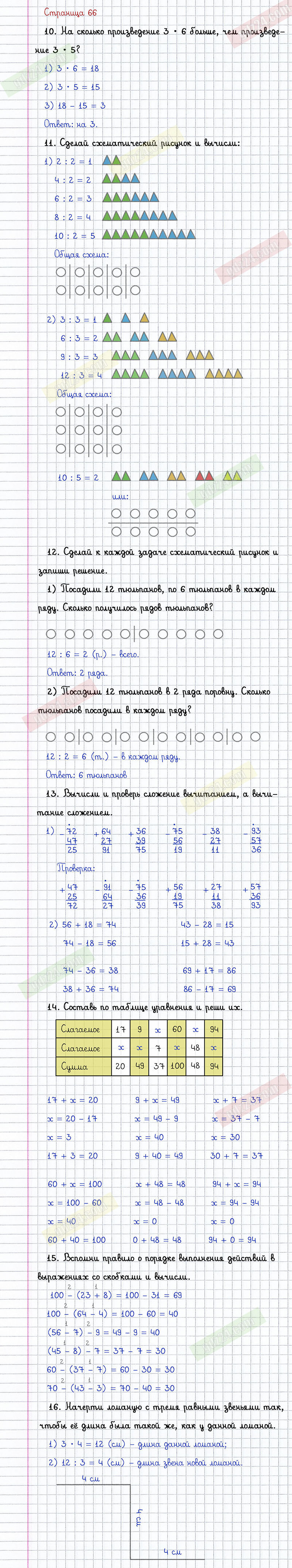 Ответы к заданиям на 66 странице учебника по математике авторов Моро М.И., Бантова М.А., Бельтюкова Г.И. за 2 класс 2 часть.