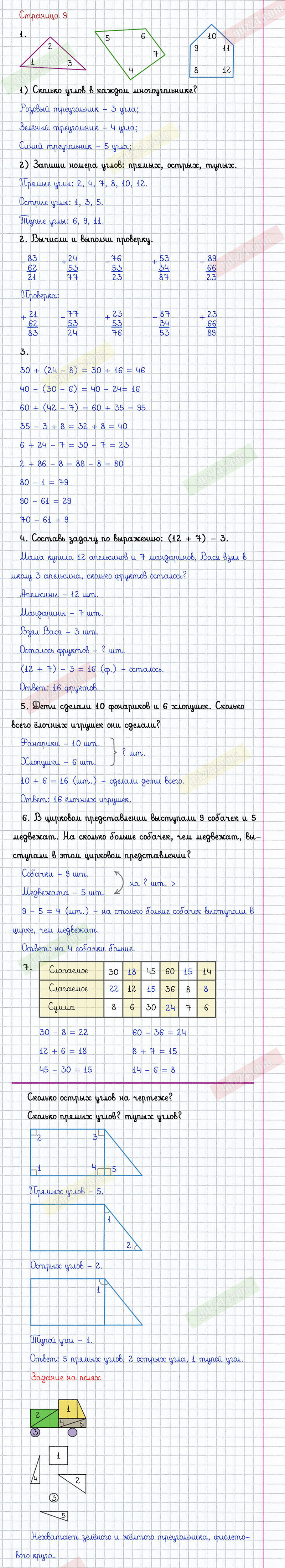 Ответы к заданиям на 9 странице учебника по математике авторов Моро М.И., Бантова М.А., Бельтюкова Г.И. за 2 класс 2 часть.