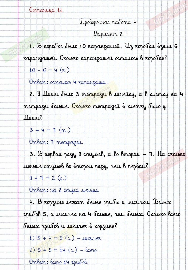 Подробные ответы к заданиям, расположенным на 11 странице проверочных работ по математике автора С.И. Волкова для учащихся 2 класса. Нумерация. Проверочная работа 4, вариант 2.
