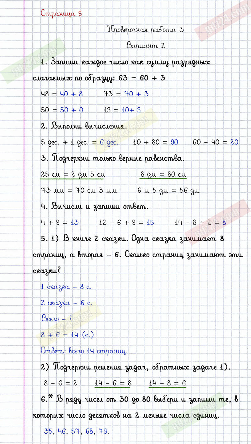 Подробные ответы к заданиям, расположенным на 9 странице проверочных работ по математике автора С.И. Волкова для учащихся 2 класса. Нумерация. Проверочная работа 3, вариант 2.