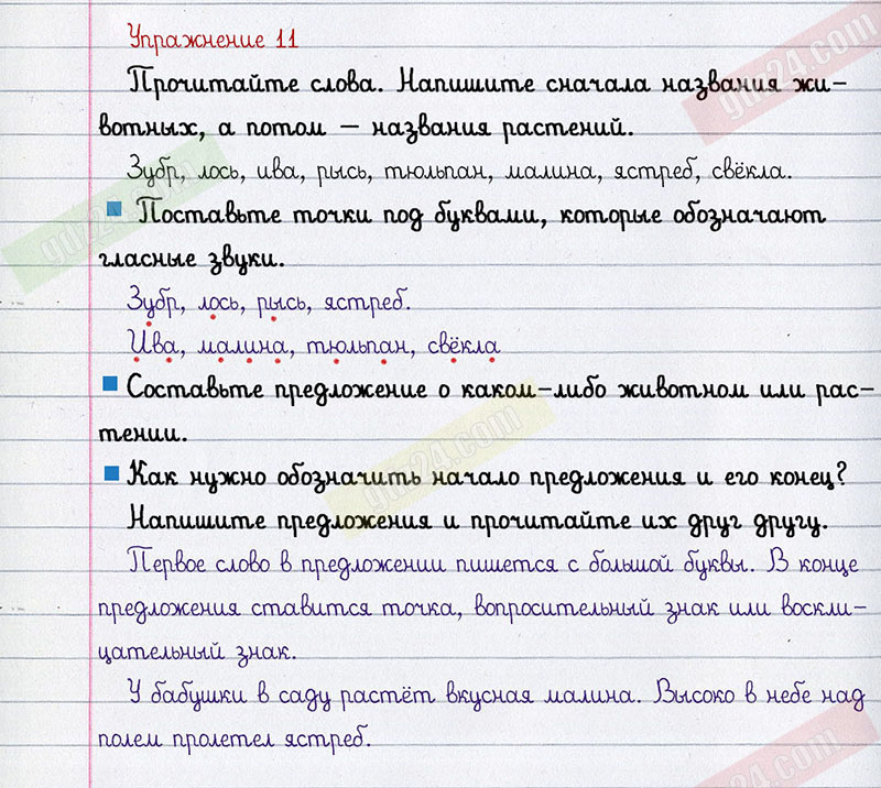 Подробные ответы к 11 упражнению 1 части учебника по русскому языку автора Т.Г. Рамзаева для учащихся 2 класса. Повторяем то, что знаем.