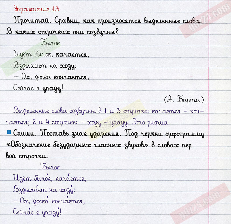 Подробные ответы к 13 упражнению 1 части учебника по русскому языку автора Т.Г. Рамзаева для учащихся 2 класса. Повторяем то, что знаем.