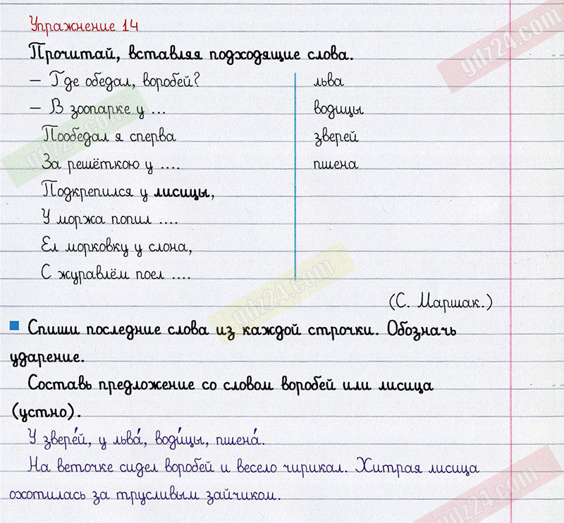 Подробные ответы к 14 упражнению 1 части учебника по русскому языку автора Т.Г. Рамзаева для учащихся 2 класса. Повторяем то, что знаем.