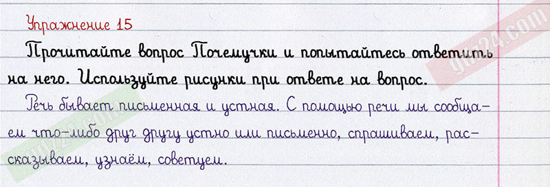 Подробные ответы к 15 упражнению 1 части учебника по русскому языку автора Т.Г. Рамзаева для учащихся 2 класса. Речь.