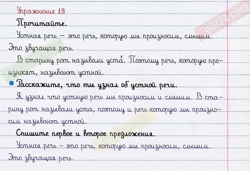 Подробные ответы к 19 упражнению 1 части учебника по русскому языку автора Т.Г. Рамзаева для учащихся 2 класса. Речь.