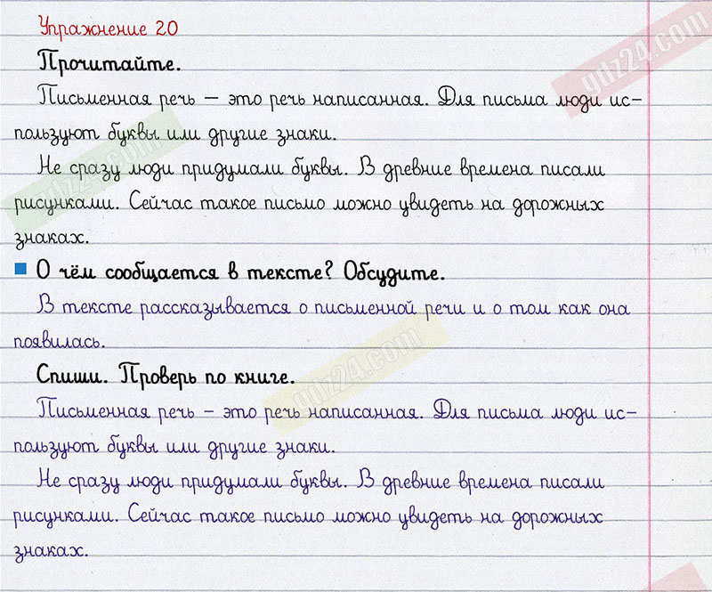 Подробные ответы к 20 упражнению 1 части учебника по русскому языку автора Т.Г. Рамзаева для учащихся 2 класса. Речь.