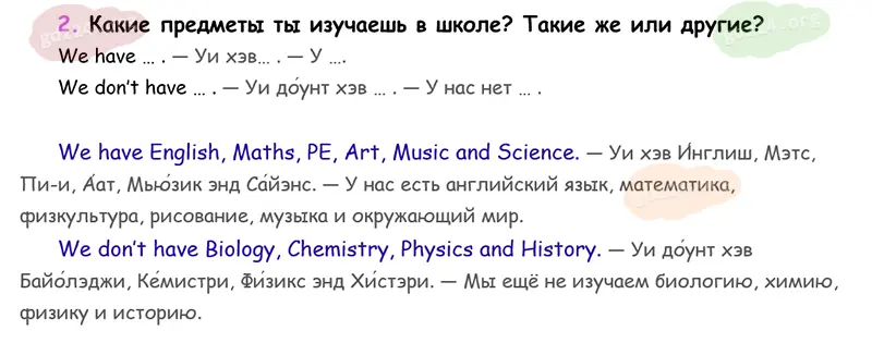 Подробные ответы к 2 заданию на 14 странице учебника Spotlight. Английский в фокусе. Н. И. Быкова, Д. Дули, М. Д. Поспелова и др. 2026 года ФГОС, 3 класс 1 часть. Module 1. School days! 2.a. School subjects!