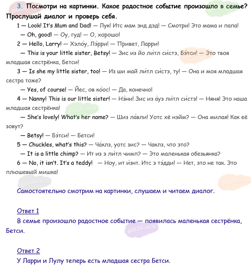 Подробные ответы к 3 заданию на 27 странице учебника Spotlight. Английский в фокусе. Н. И. Быкова, Д. Дули, М. Д. Поспелова и др. 2026 года ФГОС, 3 класс 1 часть. Module 2: Family moments! 3.a. A new member!