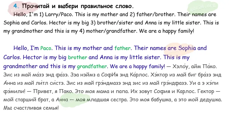 Подробные ответы к 4 заданию на 31 странице учебника Spotlight. Английский в фокусе. Н. И. Быкова, Д. Дули, М. Д. Поспелова и др. 2026 года ФГОС, 3 класс 1 часть. Module 2: Family moments! 4.a. A happy family!