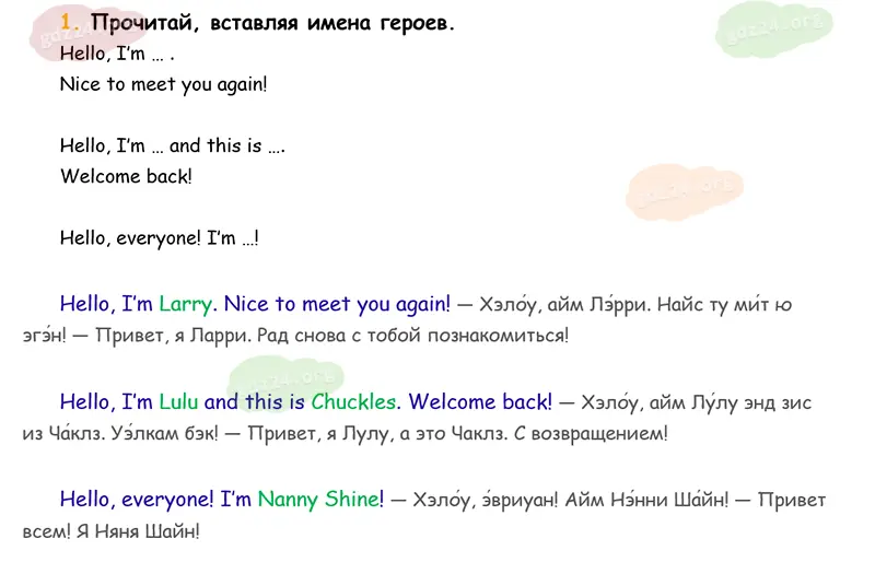 Подробные ответы к 1 заданию на 4 странице учебника Spotlight. Английский в фокусе. Н. И. Быкова, Д. Дули, М. Д. Поспелова и др. 2026 года ФГОС, 3 класс 1 часть. Starter Unit. Welcome back!