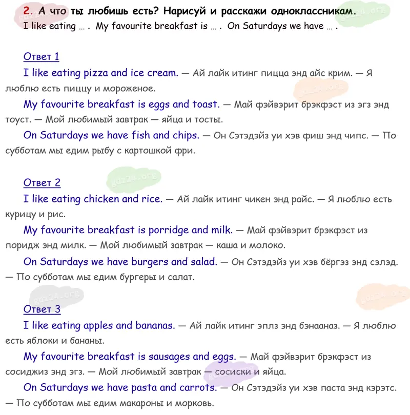 Подробные ответы к 2 заданию на 55 странице учебника Spotlight. Английский в фокусе. Н. И. Быкова, Д. Дули, М. Д. Поспелова и др. 2026 года ФГОС, 3 класс 1 часть. Module 2. A bite to eat!