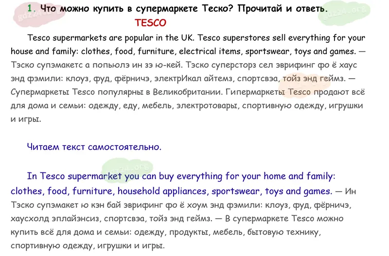 Подробные ответы к 1 заданию на 71 странице учебника Spotlight. Английский в фокусе. Н. И. Быкова, Д. Дули, М. Д. Поспелова и др. 2026 года ФГОС, 3 класс 1 часть. Module 4. Tesco Superstore.