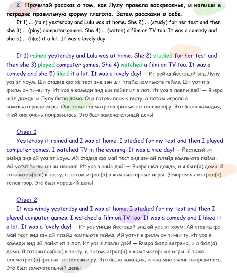 Подробные ответы к 2 заданию на 73 странице учебника Spotlight. Английский в фокусе. Н. И. Быкова, Д. Дули, М. Д. Поспелова и др. 2026 года ФГОС, 3 класс 1 часть. Module 4. Grammar Time!