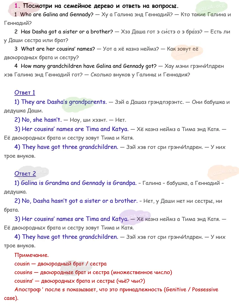 Подробные ответы к 1 заданию на 83 странице учебника Spotlight. Английский в фокусе. Н. И. Быкова, Д. Дули, М. Д. Поспелова и др. 2026 года ФГОС, 3 класс 1 часть. Module 4. Russia. 2. Families in Russia.
