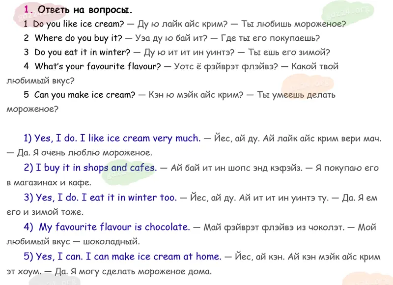 Подробные ответы к 1 заданию на 84 странице учебника Spotlight. Английский в фокусе. Н. И. Быкова, Д. Дули, М. Д. Поспелова и др. 2026 года ФГОС, 3 класс 1 часть. Module 4. Russia. 3. I screem for ice cream!