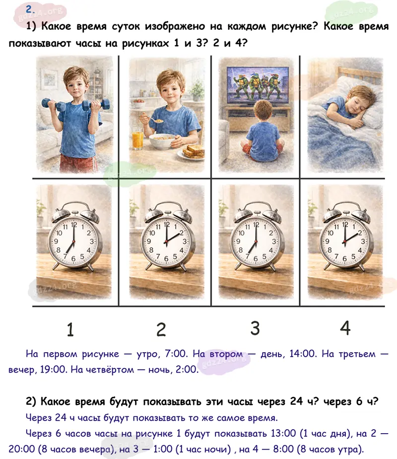 Подробные ответы к 2 заданию на 100 странице учебника по математике М. И. Моро 2026 года ФГОС, 3 класс 1 часть. Сутки.