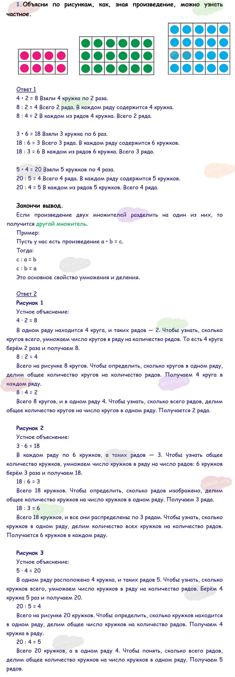 Подробные ответы к 1 заданию на 19 странице учебника по математике М. И. Моро 2026 года ФГОС, 3 класс 1 часть. Связь деления с умножением.