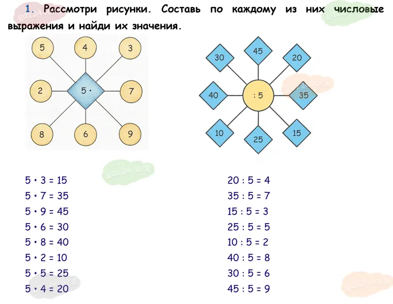 Подробные ответы к 1 заданию на 32 странице учебника по математике М. И. Моро 2026 года ФГОС, 3 класс 1 часть. Умножение и деление с числом 5.