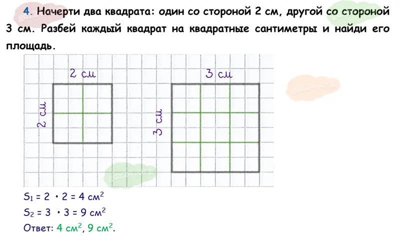 Подробные ответы к 4 заданию на 57 странице учебника по математике М. И. Моро 2026 года ФГОС, 3 класс 1 часть. Площадь прямоугольника.