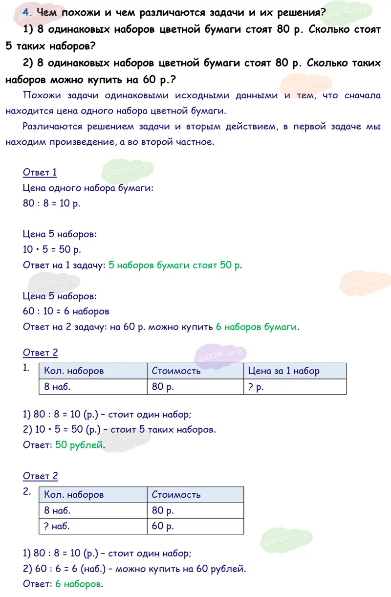 Подробные ответы к 4 заданию на 59 странице учебника по математике М. И. Моро 2026 года ФГОС, 3 класс 1 часть. Умножение и деление с числами 8 и 9.