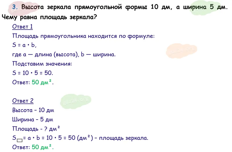 Подробные ответы к 3 заданию на 63 странице учебника по математике М. И. Моро 2026 года ФГОС, 3 класс 1 часть. Квадратный дециметр.