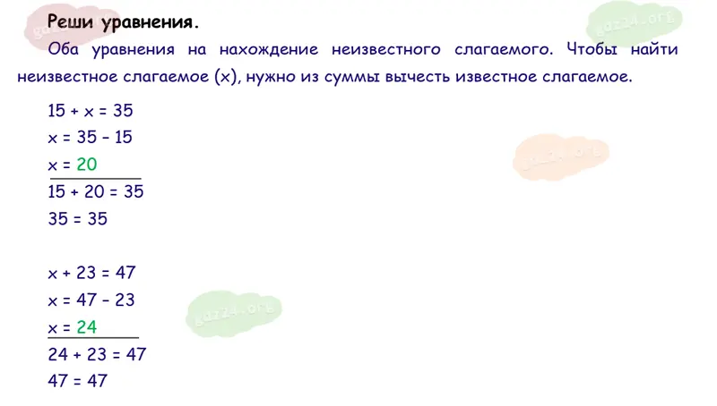 Подробные ответы заданию внизу 7 страницы учебника по математике М. И. Моро 2026 года ФГОС, 3 класс 1 часть. Решение уравнений.