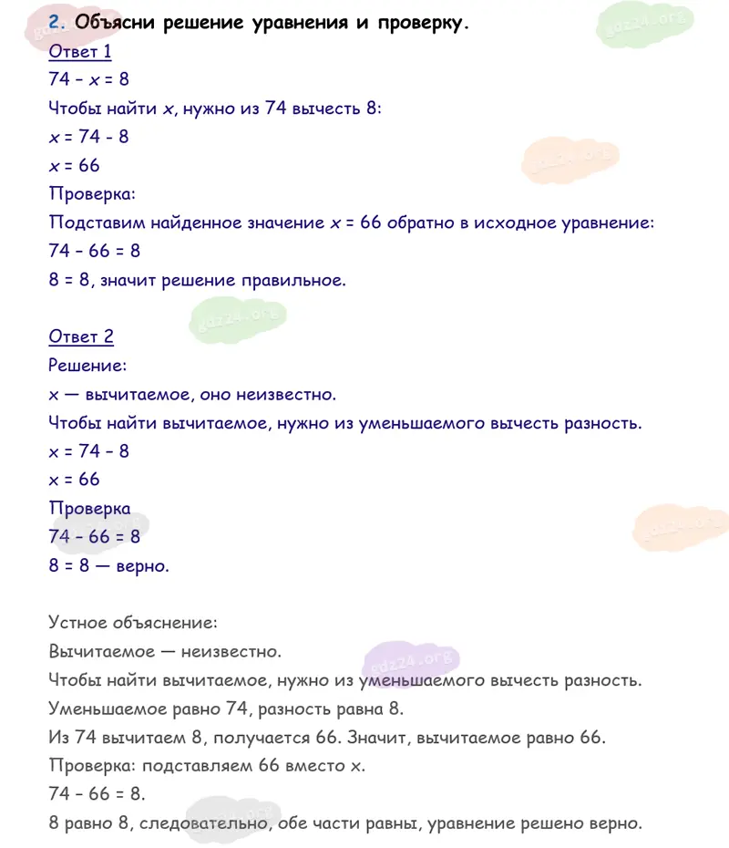Подробные ответы к 2 заданию на 9 странице учебника по математике М. И. Моро 2026 года ФГОС, 3 класс 1 часть. Решение уравнений.
