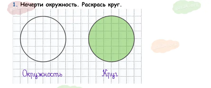 Подробные ответы к 1 заданию на 94 странице учебника по математике М. И. Моро 2026 года ФГОС, 3 класс 1 часть. Окружность. Круг.