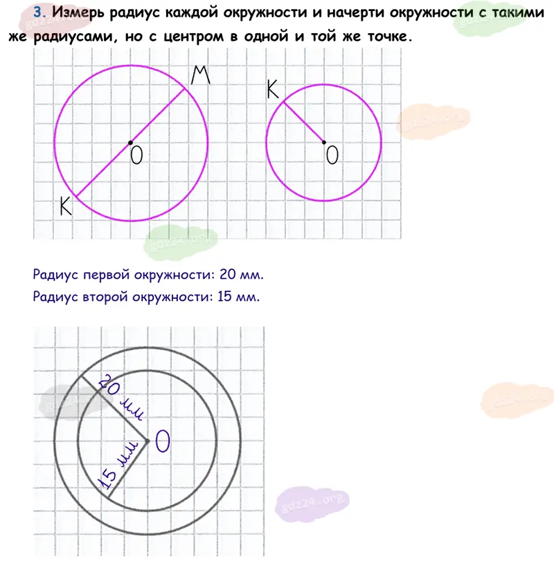 Подробные ответы к 3 заданию на 95 странице учебника по математике М. И. Моро 2026 года ФГОС, 3 класс 1 часть. Окружность. Круг.
