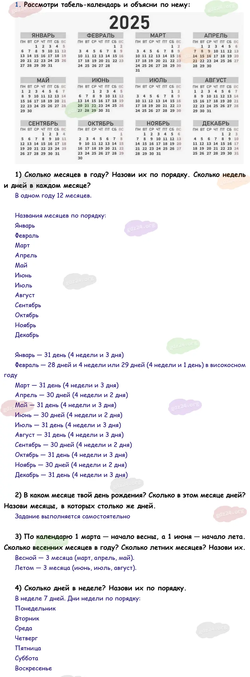 Подробные ответы к 1 заданию на 98 странице учебника по математике М. И. Моро 2026 года ФГОС, 3 класс 1 часть. Единицы времени. Год. Месяц.